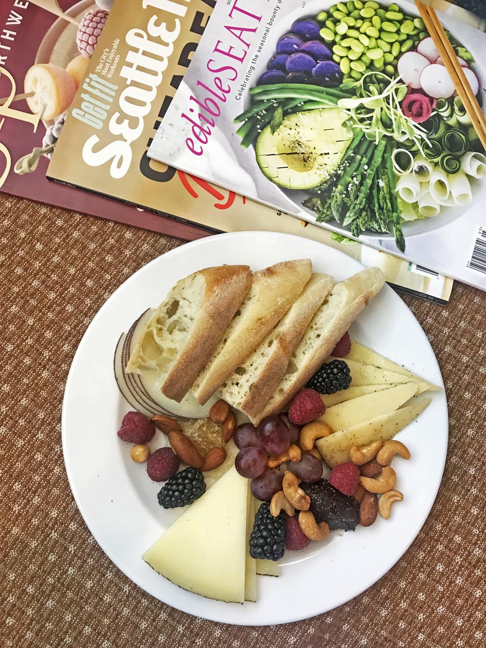 Winding down for the night? As I mentioned before, there are plenty of great nooks for relaxing at the Alderbrook Resort. In the room, find a selection of local magazines in the nook by the bay window. Just a few steps away, you can also enjoy the sights and sounds from your balcony.