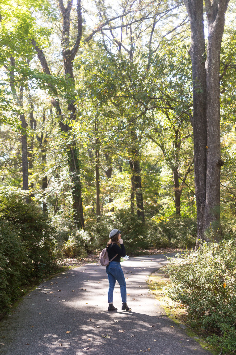 Getting out and taking in the beautiful nature scenes at Norfolk’s Botanical Gardens was one of the highlights of the trip. For this adventure, I knew I wouldn’t want to schlep around my everyday purse, which puts all the strain on one shoulder when filled up. Instead, I grabbed my handy travel backpack. It’s a small size but also easily converts to a crossbody bag if I prefer that. It’s large enough to fit my DSLR and what I typically carry in my purse like keys, wallet, and snacks. But even filled up, the lightweight material keeps it from feeling too heavy.