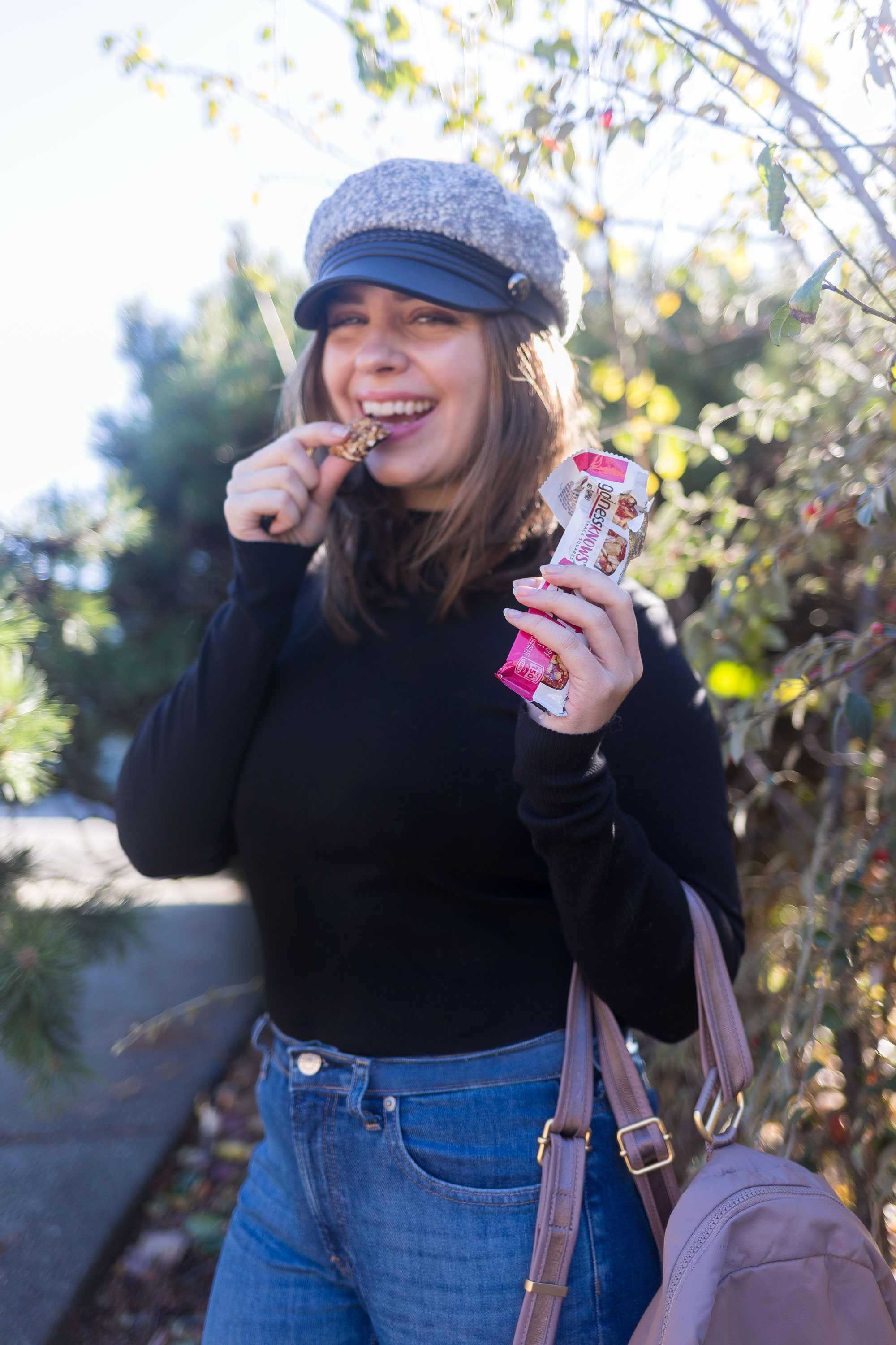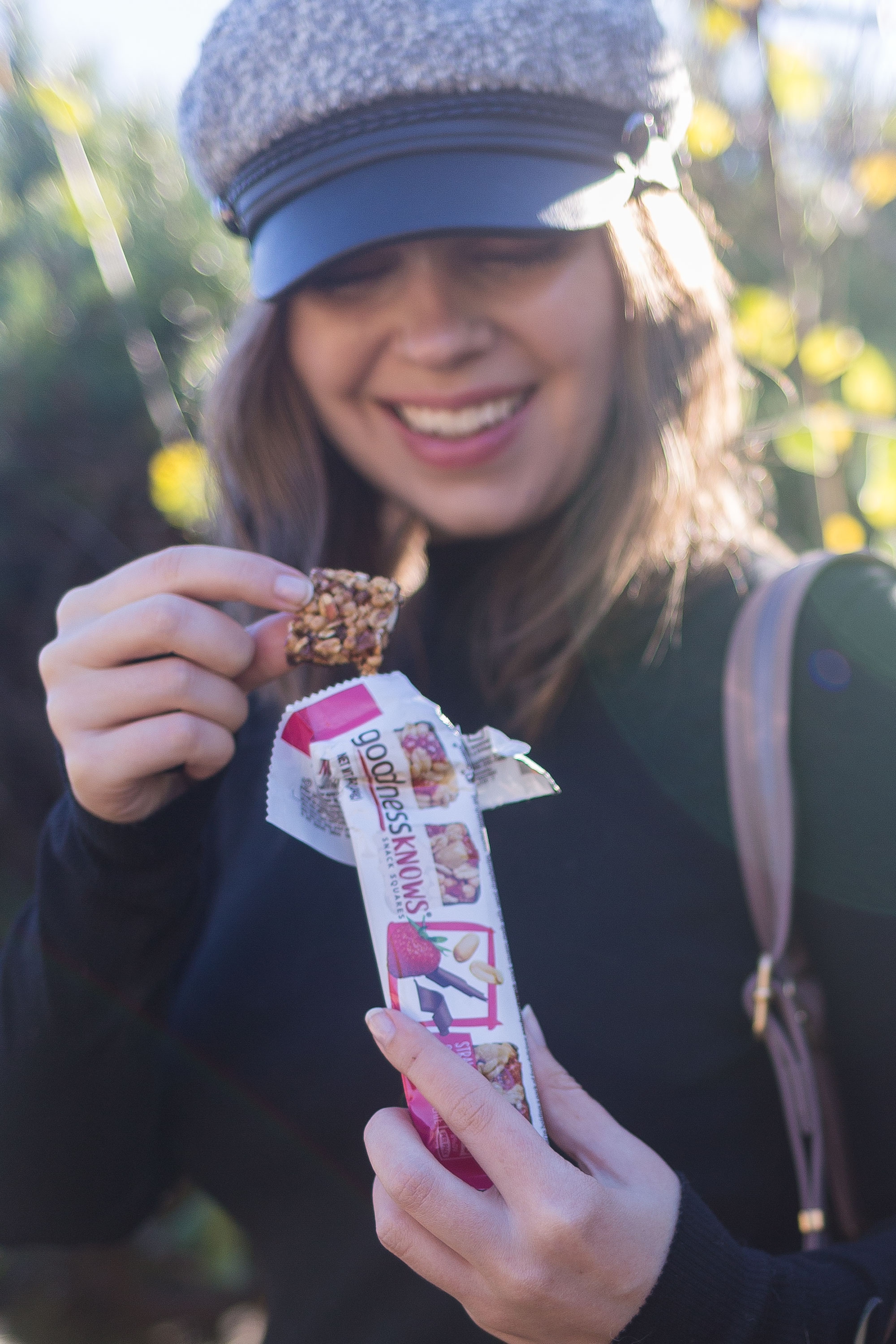 Speaking of snacks, no adventure would be complete without them. That’s why lately I’ve been packing goodnessKNOWS snack squares with me when traveling and in my commuter bag. I love that they are portioned into four snack squares, so I can eat a bite and save the rest for later, or eat the whole pack as a quick breakfast for just 150 calories.