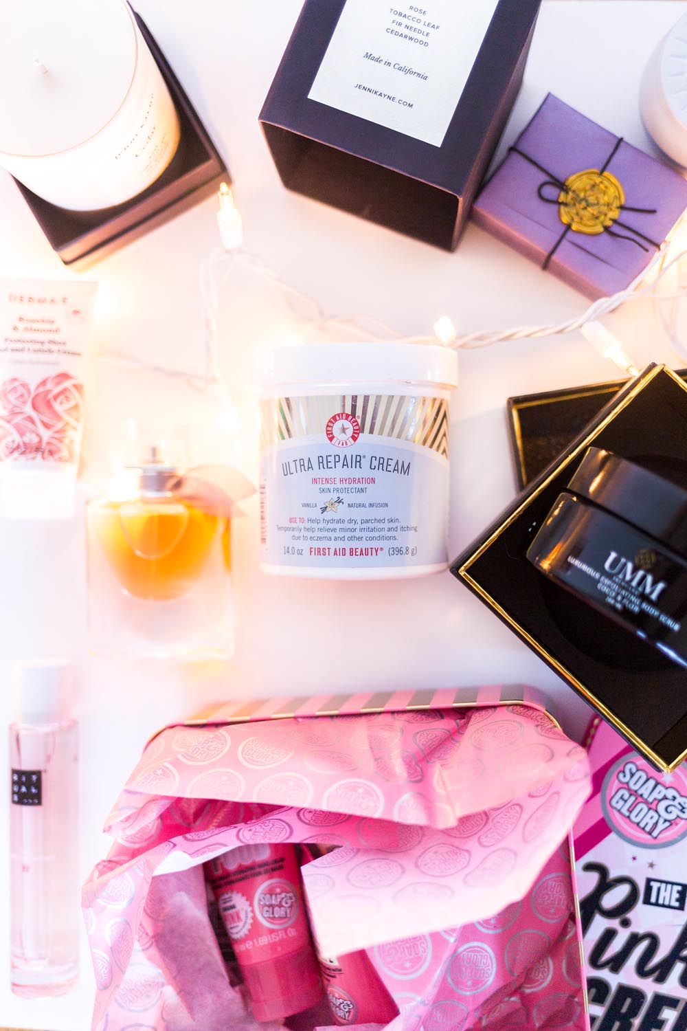 6. First Aid Beauty Ultra Repair Cream, $30 Looking to treat someone to the gift of incredibly soft skin? First Aid Beauty is known for their Ultra Repair Cream, now in a variety of scents perfect for gifting! 7. Sol de Janiero Carnaval Extravaganza, $59 The most incredible scent? Anything by Sol de Janiero! Their Bum Bum Cream is amazingly hydrating, smells great, and is a part of this gift set. 8. Soap & Glory Pink Credibles Giftset, $16 Affordable, smells great, and perfectly giftable. That describes this set from Soap & Glory for the holidays! Anyone who loves a good bath would be happy with this gift set, all wrapped up in a cute little tin! 9. Derma-e Rosehip & Almond Hand and Cuticle Cream, $7 A small gift perfect for anyone who enjoys having soft hands during the winter months! Derma-e makes some of my favorite affordable skincare, and this hand cream is no exception! 10. Jenni Kayne Candle, $44 For a beautiful gift for anyone on your list, look no further than a Jenni Kayne Candle! This one will have you thinking of walks in the woods on the perfect winter day.