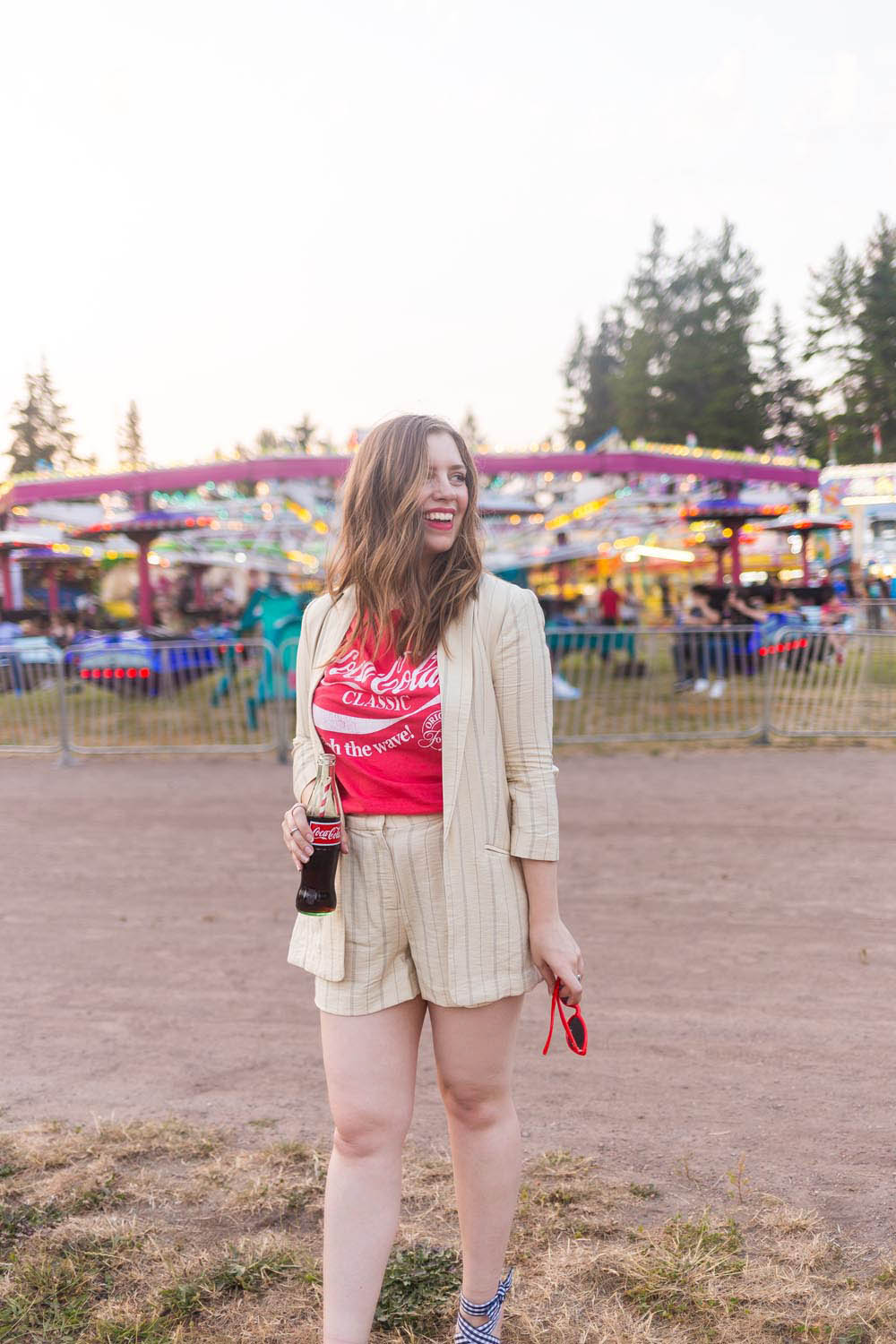 Bright flashing lights, colorful rides, and the sweet smells of elephant ears, strawberry shortcake, and cotton candy filled the air as we walked through the carnival. I couldn’t resist snapping a few photos of this cute little striped long blazer and coordinating striped shorts from the LC Lauren Conrad line at Kohl’s. A Coca-Cola Graphic Tee was the perfect pop of color, and of course, I couldn’t forget to grab a bottle of the real thing to sip on!