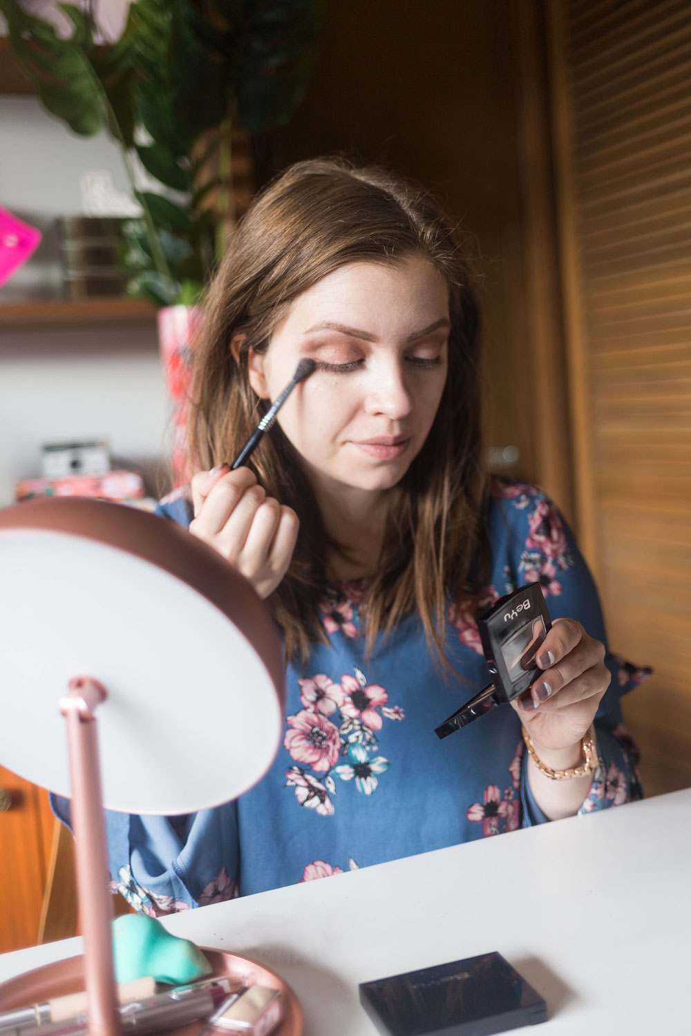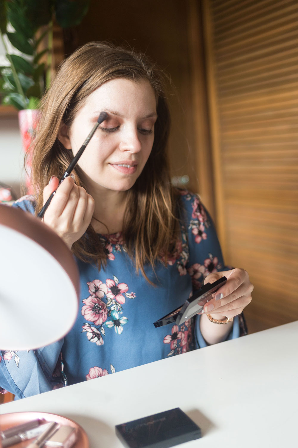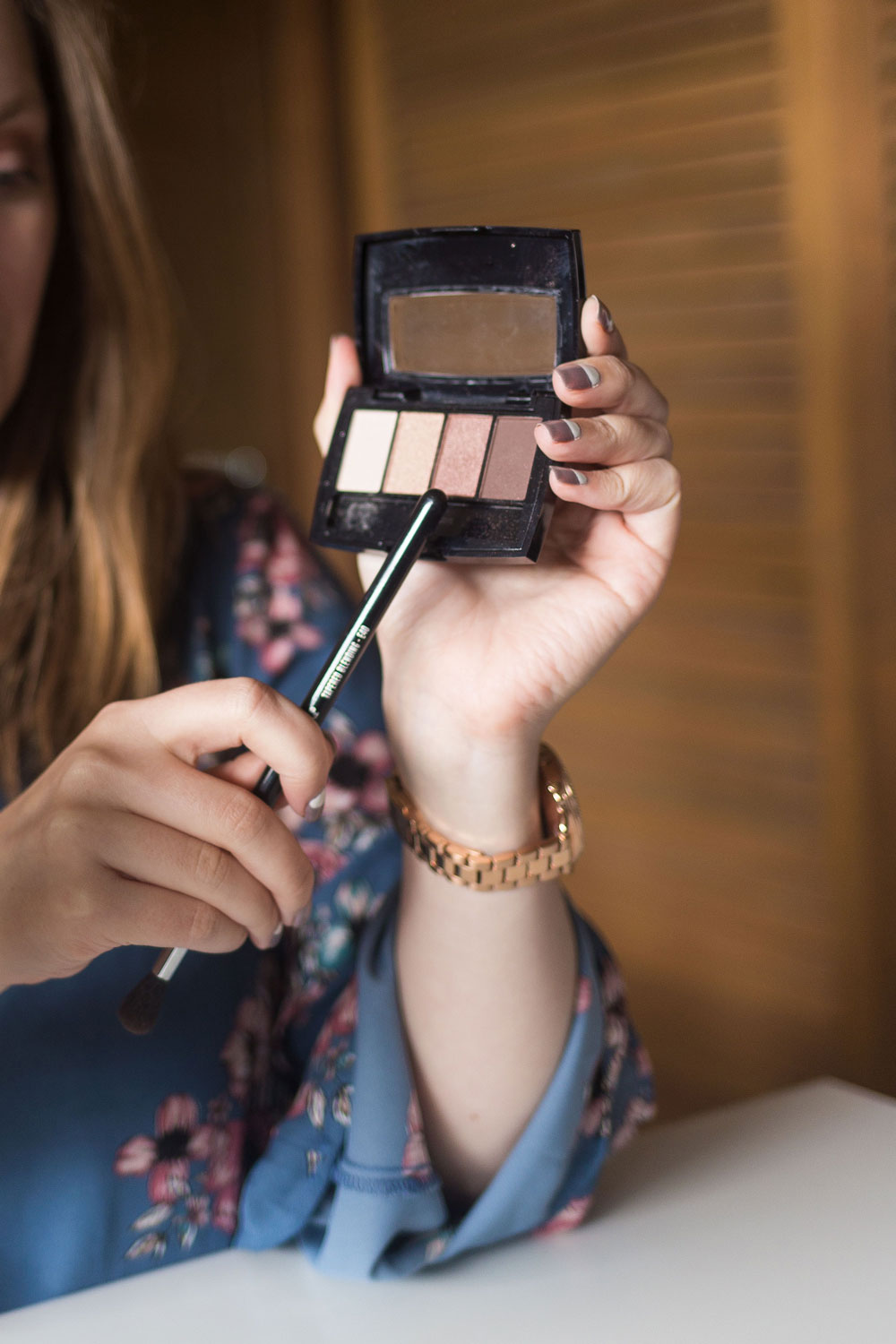 To create this pretty makeup look, my first step is eyes. I tend to always start with the eyes to avoid any fallout from the eye shadow.