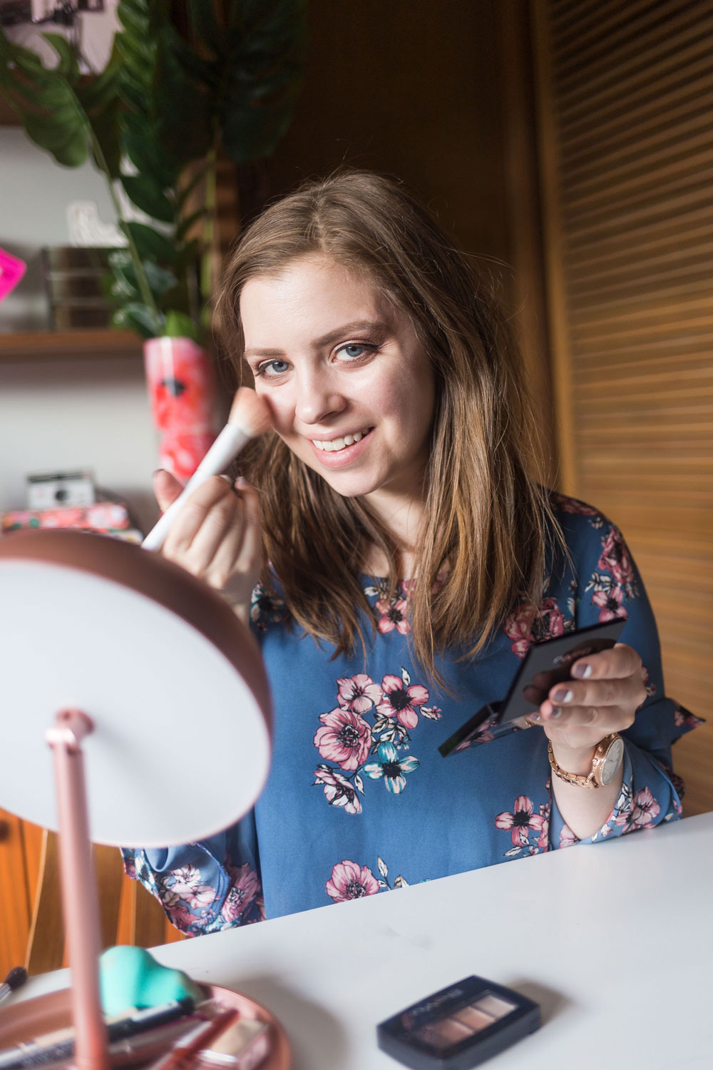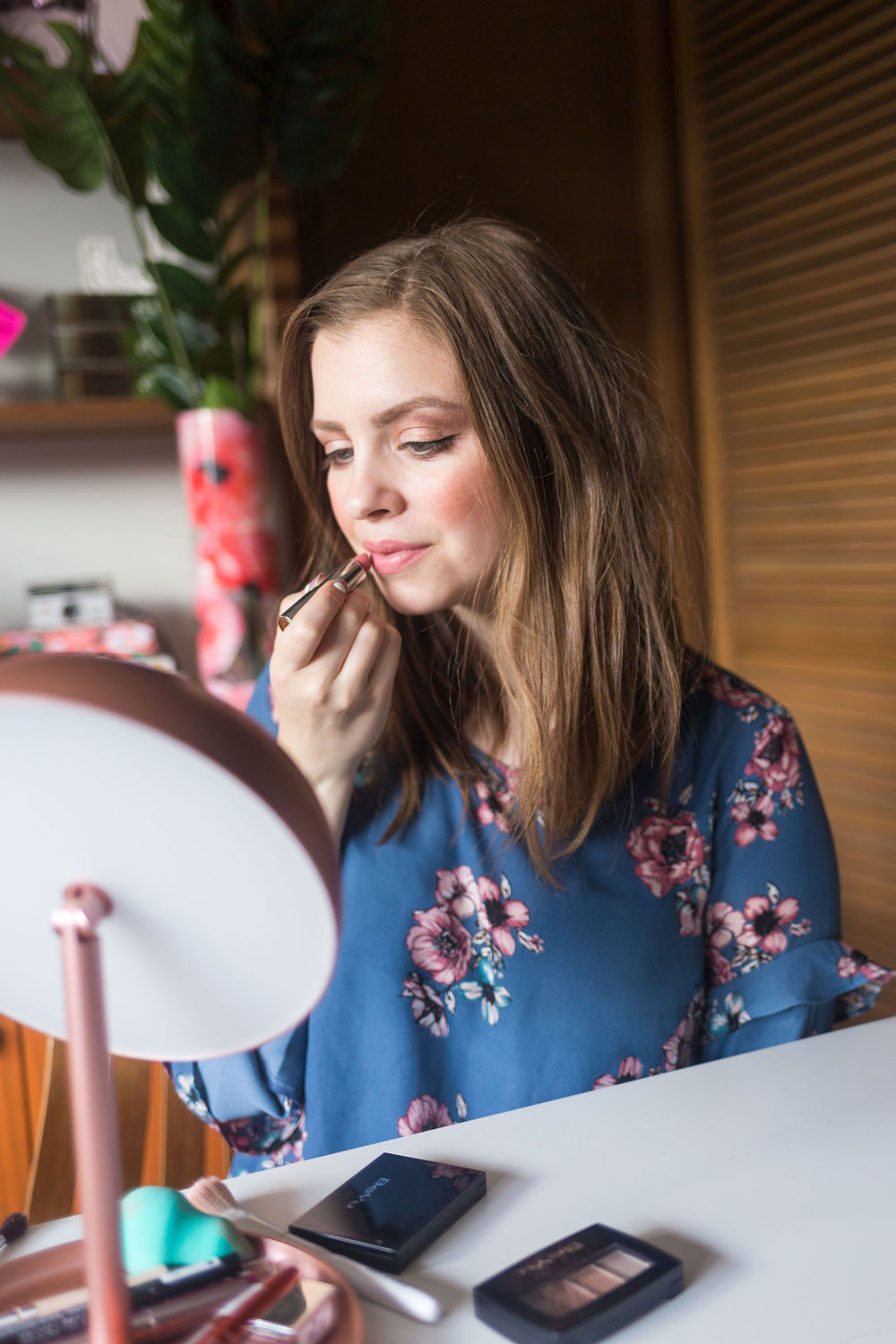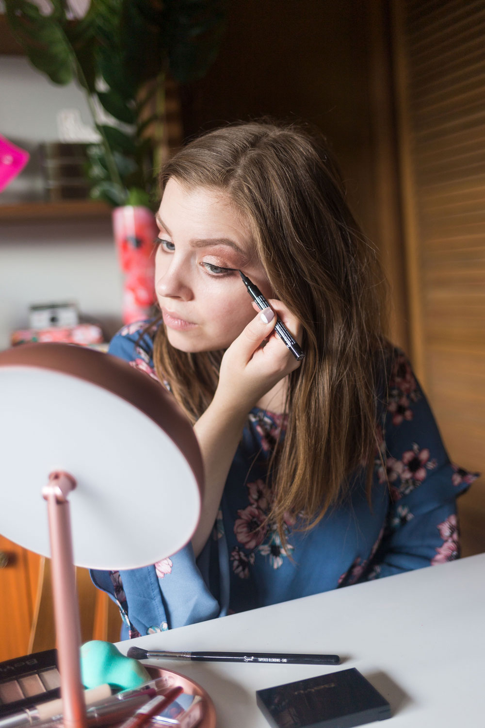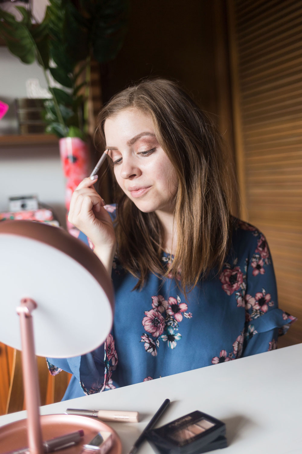 To create this pretty makeup look, my first step is eyes. I tend to always start with the eyes to avoid any fallout from the eye shadow.