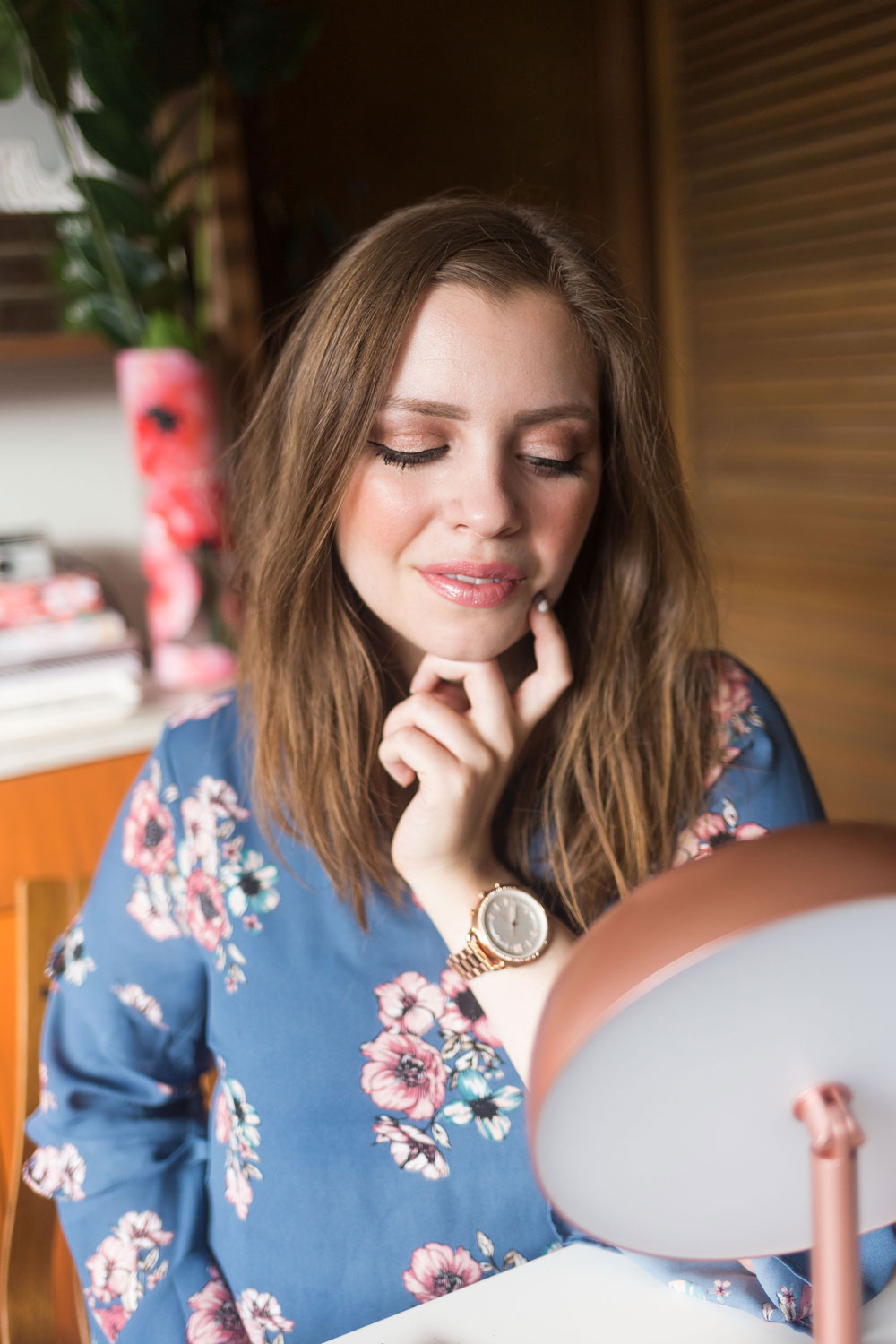 To add a pop of interest to the lips, I also added a touch of Catwalk Volume Gloss in No. 42 Toffee Shimmer to the center of my lips. I love how much this gloss reflects the light! It almost gives a metallic-like look to my lips in real life.