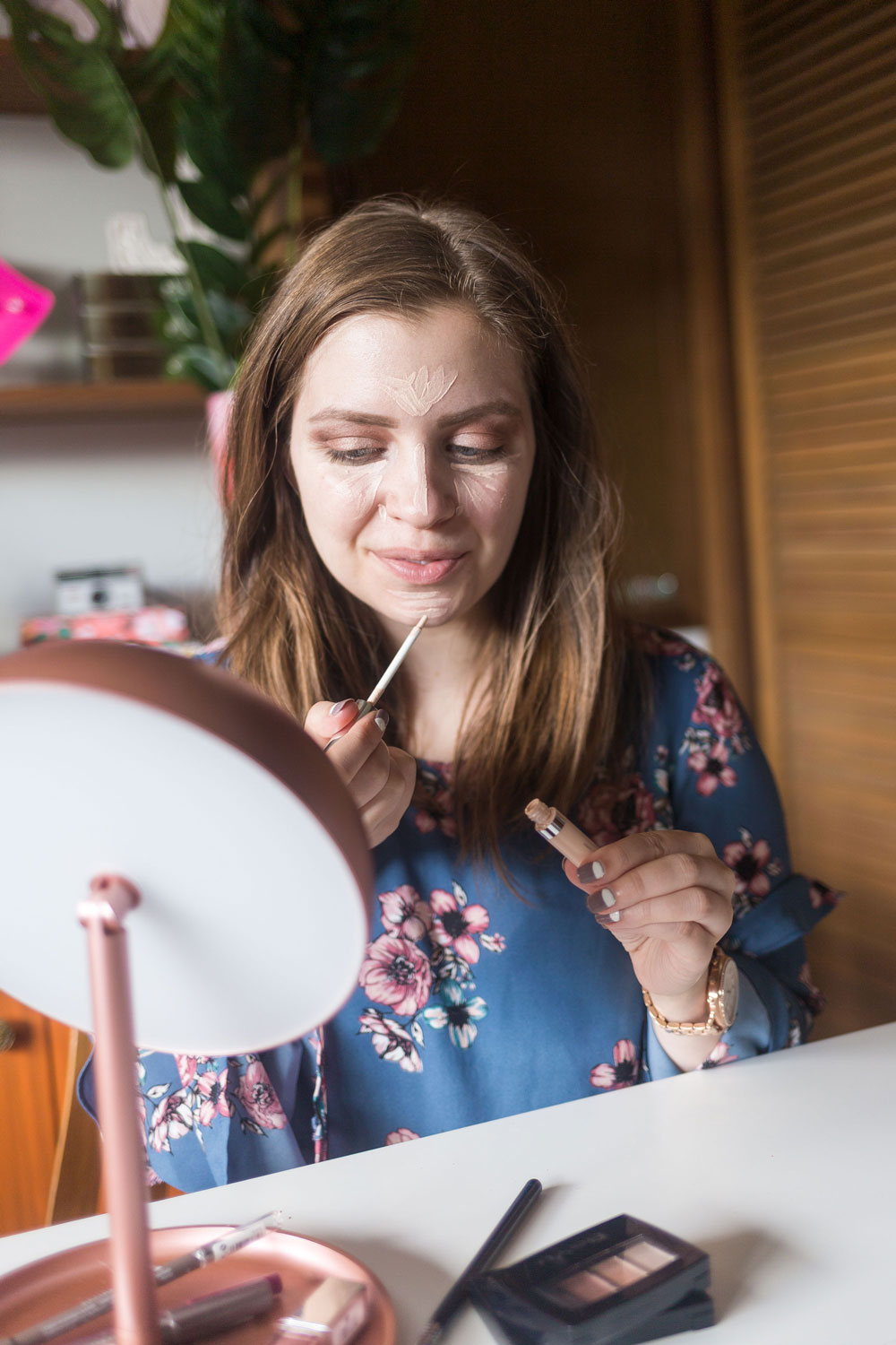 After my eyes were done, I went in with the Light Reflecting Concealer in No. 3 Vanilla White. I love how lightweight and hydrating this concealer is! It definitely does not offer full coverage, but is enough to cover up dark under eyes and red spots, which is all I need most days. I opted to skip the foundation in favor of a lighter weight coverage. That’s what I’ve personally been doing more frequently on a day-to-day basis and find that my skin is much happier for it!