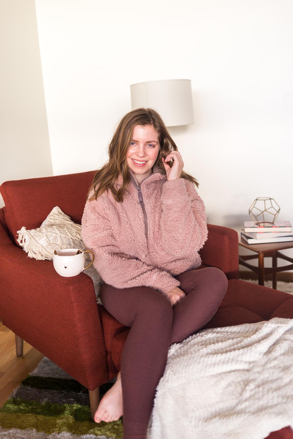 I love that there is a an actual word for the feeling of hygge! For me, that ultimate comfort zone is not achievable unless I have a thick fleece blanket wrapped around me while sitting on MY side of the couch. Honestly, I can’t sit anywhere else. I also love all things Sherpa, especially slippers. :)