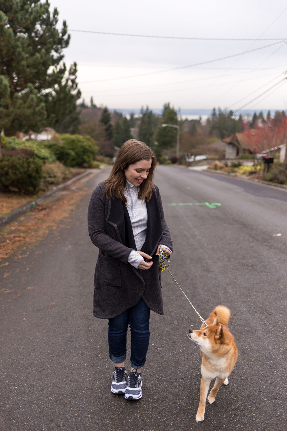 Now that winter has hit, it’s often pretty chilly so picking up the pace is pretty easy. We typically do a combination of a walk and a jog to take care of business, going uphill one way to really get those muscles working.