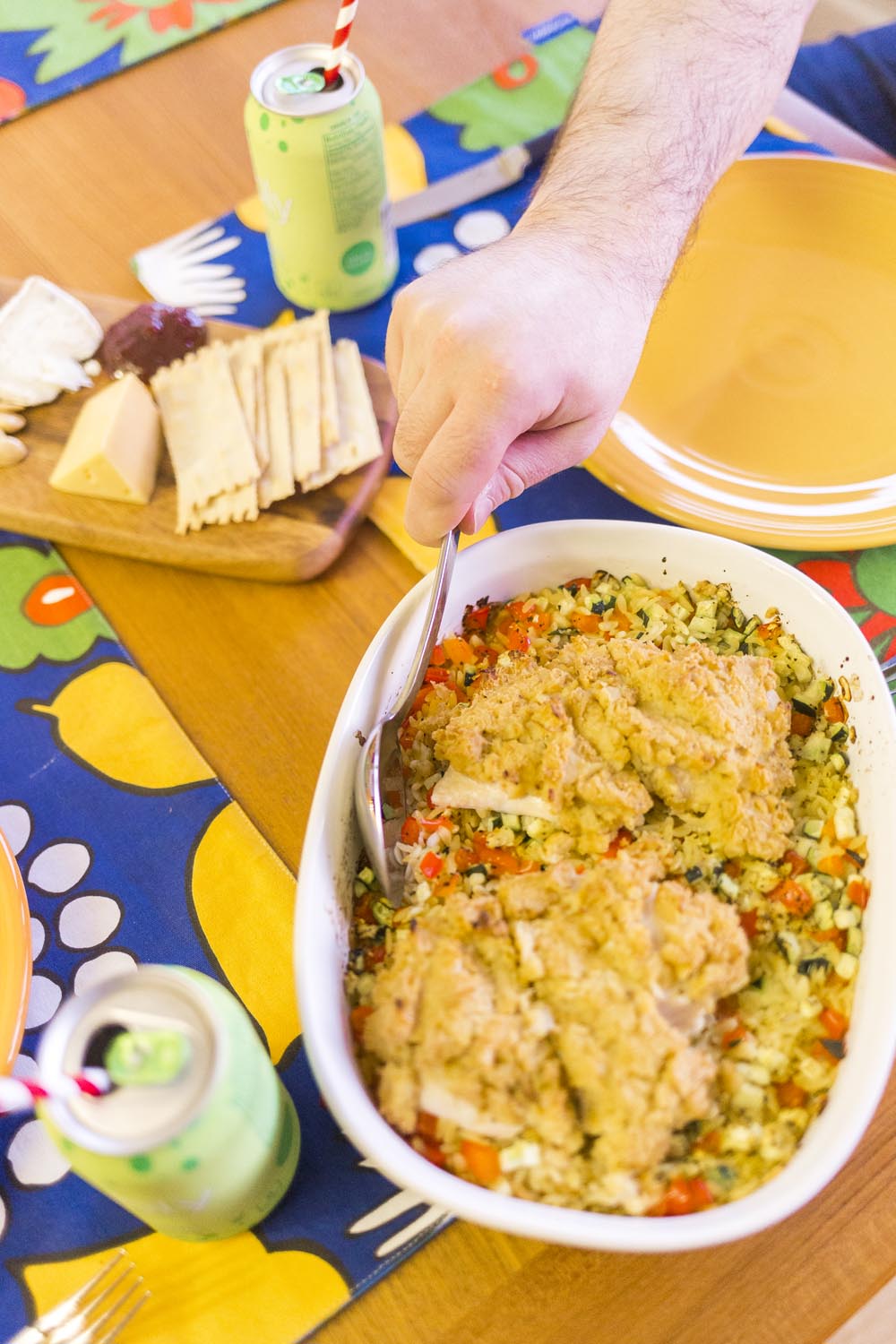 In just about 20 minutes, we had a healthy and fresh dinner on the table, which also freed up my time and energy to whip up a cheese plate for snacking while it was cooking. What can I say, I was feeling a little extra, and the Murray’s Cheese Shop at Fred Meyer had been calling my name. They have a killer selection of cheese and accoutrements, and I always love picking out a new-to-me cheese to try! The one that caught my eye was a soft cheese made with truffles. So. Good.