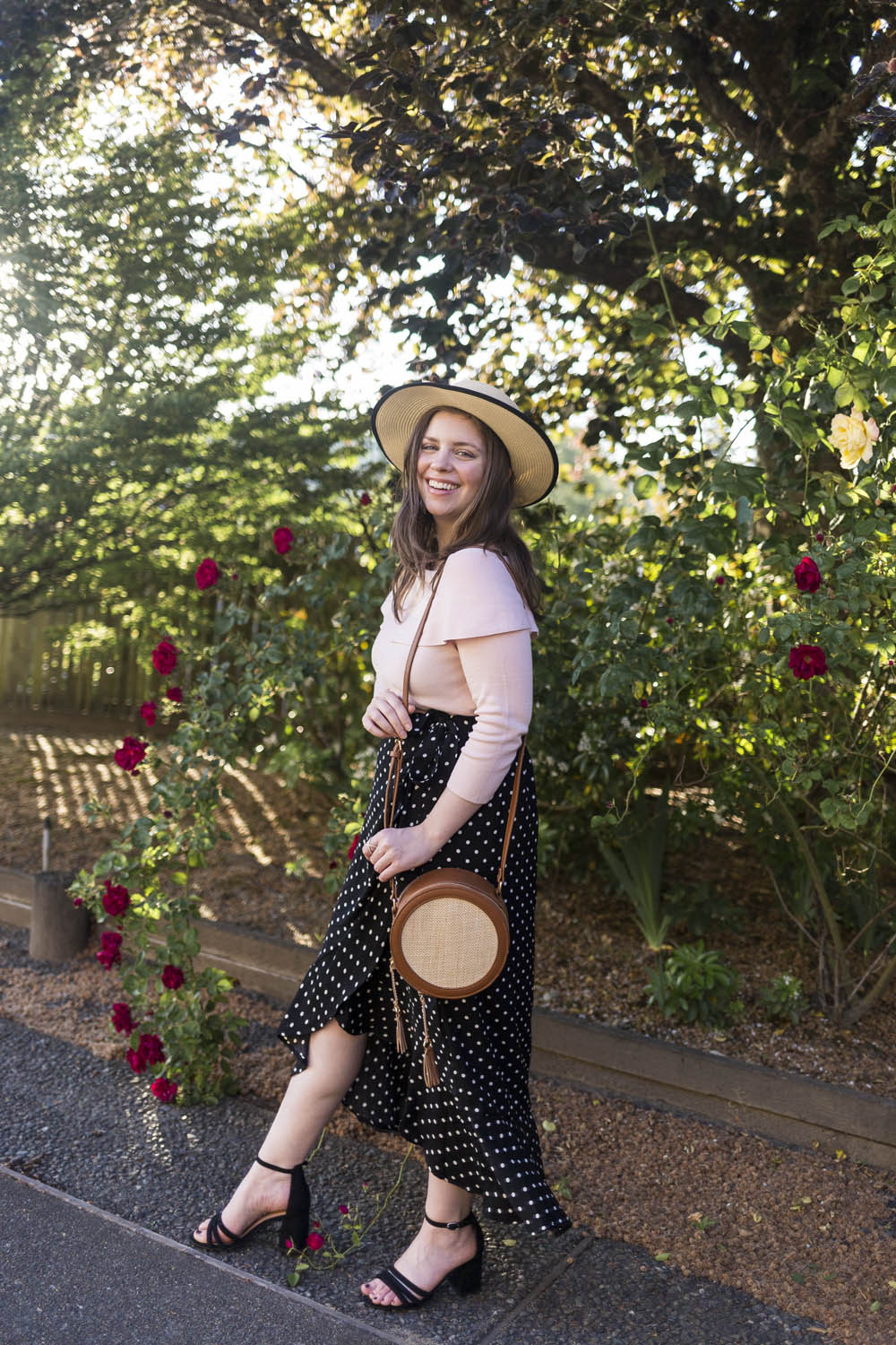 To finish off this look, simple accessories are key. I love the circle bag trend this season, and this bag with adds the perfect touch of texture. To pull it all together, I went for a simple pair of open-toed sandals.