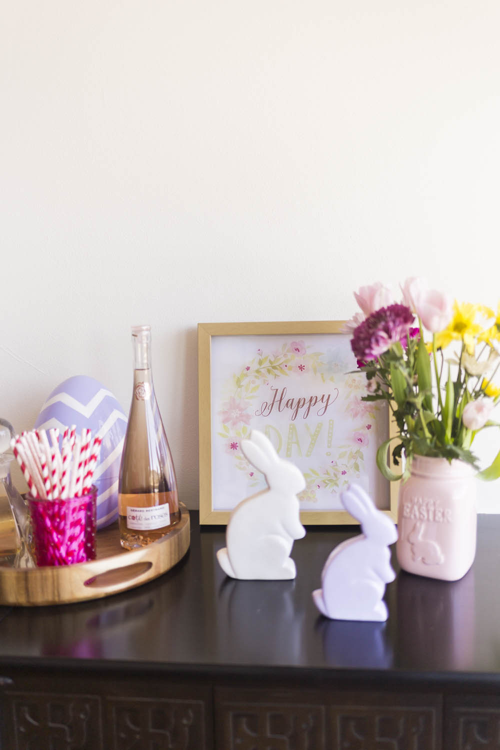 Holiday Home offers premium decorations at a price you really can’t go wrong with. My favorite pieces from the collection are the pastel ceramics and the fun jumbo eggs. I picked up a white and lavender bunny, a coordinating “Happy Easter” vase for some pretty blooms, and a purple chevron jumbo egg to go on my bar tray! I also can’t get enough of the tableware. The floral ceramic plates and egg cups are probably my favorite! Pro tip: Don’t forget to check the standard home decor department for seasonal finds too! I found the “Happy Day!” sign there and think it’s the perfect touch of spring for my wall decor.